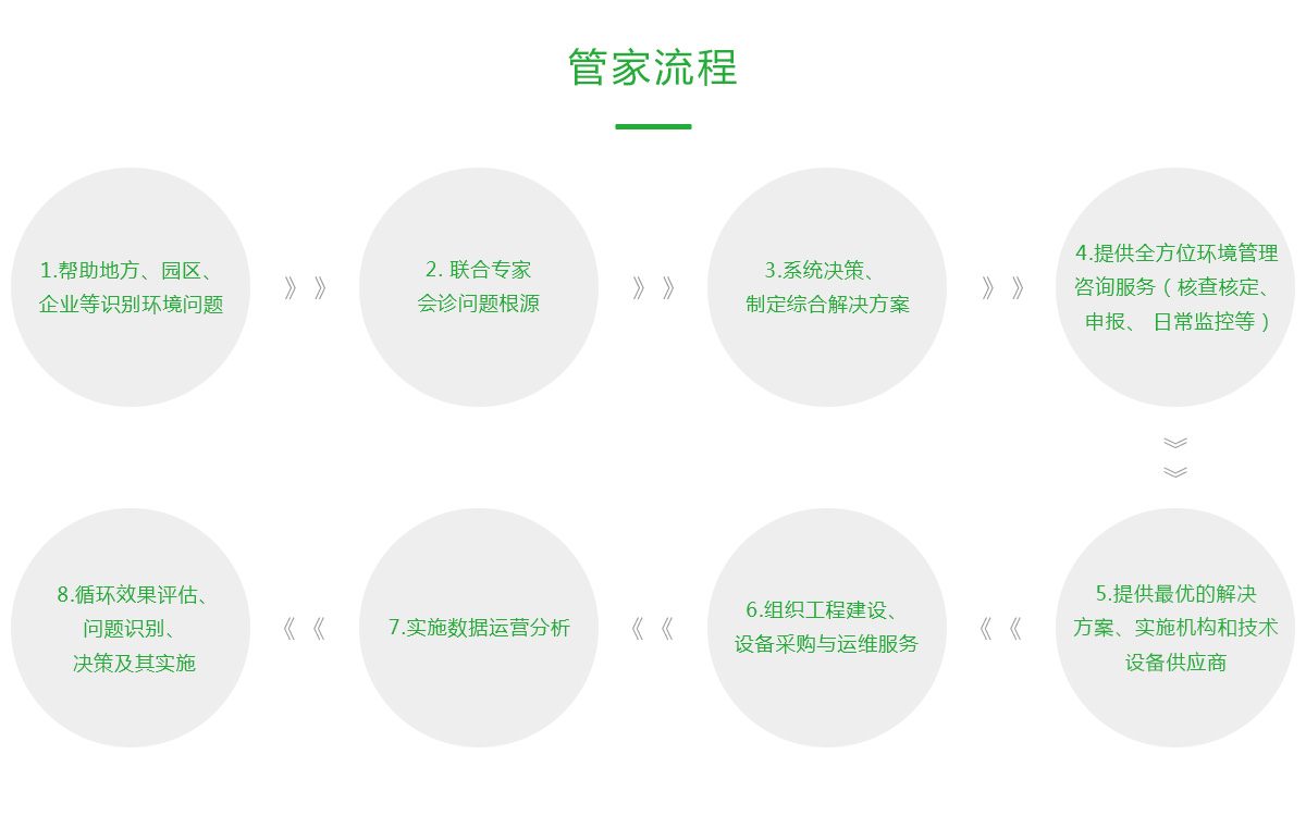 ● 環(huán)保管家是指為政府、工業(yè)園區(qū)、企業(yè)等提供合同式環(huán)境綜合服務(wù),提供從項(xiàng)目立項(xiàng)、前期、建設(shè)、運(yùn)營等全過程中的污染調(diào)查、監(jiān)測、監(jiān)理、環(huán)保設(shè)施建設(shè)、運(yùn)營、污染治理等一體化環(huán)保服務(wù)和解決方案,從環(huán)保政策解讀、環(huán)保問題咨詢、環(huán)保整體解決方案、環(huán)境風(fēng)險(xiǎn)管控、污染達(dá)標(biāo)排放等方面提供一條龍環(huán)保服務(wù)。
