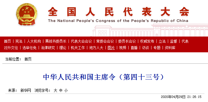 《中華人民共和國(guó)固體廢物污染環(huán)境防治法》已由中華人民共和國(guó)第十三屆全國(guó)人民代表大會(huì)常務(wù)委員會(huì)第十七次會(huì)議于2020年4月29日修訂通過(guò),現(xiàn)予公布,自2020年9月1日起施行。
