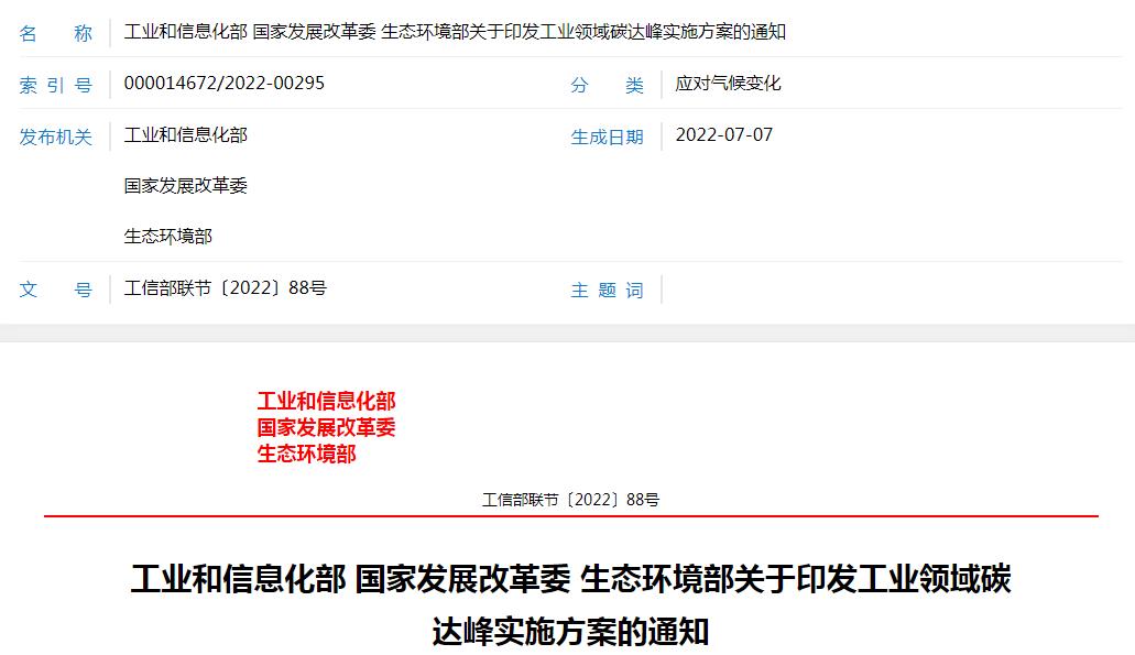 三部委印發(fā)工業(yè)領(lǐng)域碳達(dá)峰實(shí)施方案