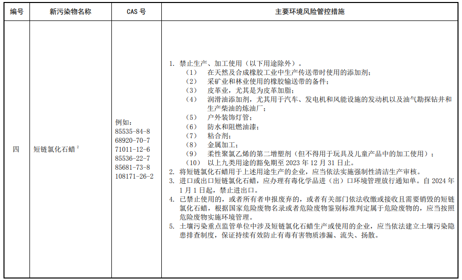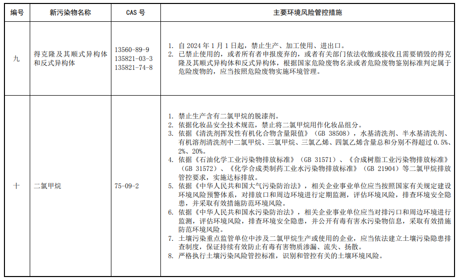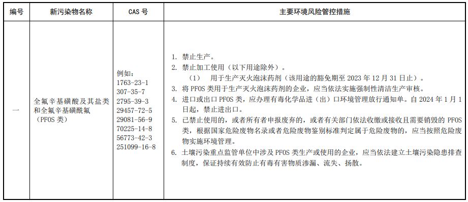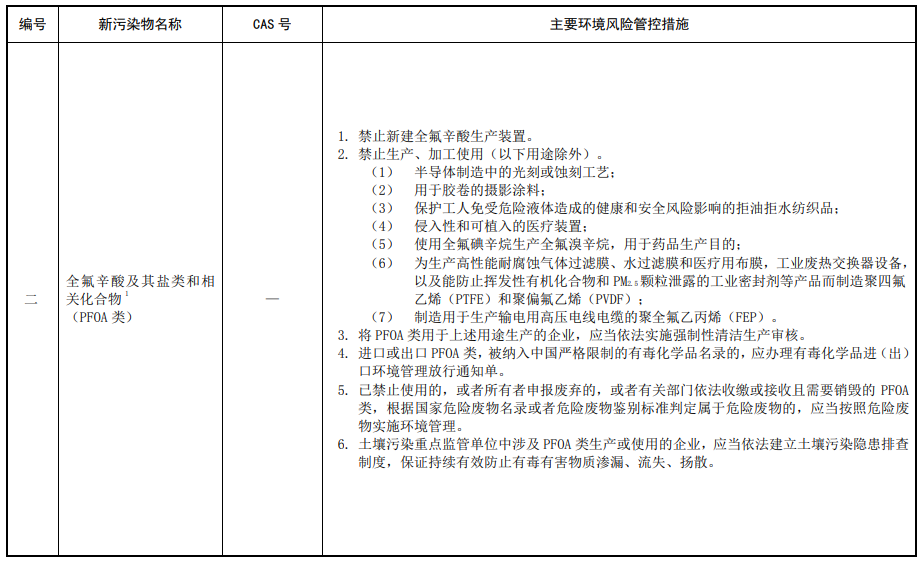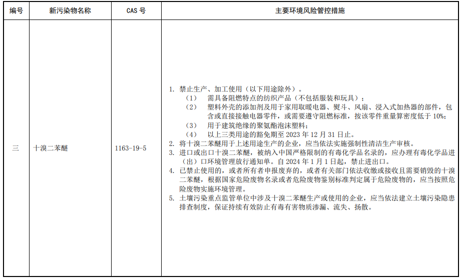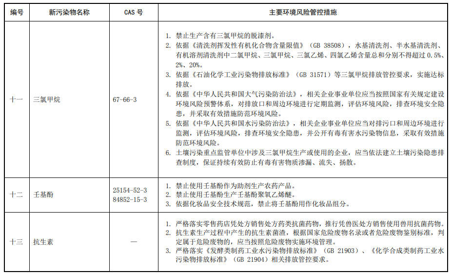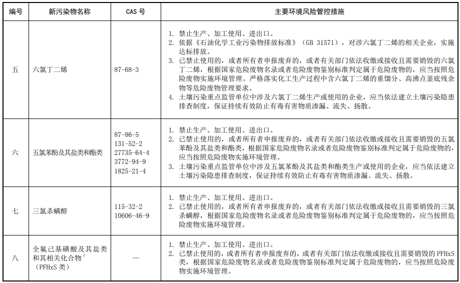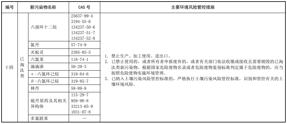 第三條 對列入本清單的新污染物,應當按照國家有關規(guī)定采取禁止、限制、限排等環(huán)境風險管控措施。